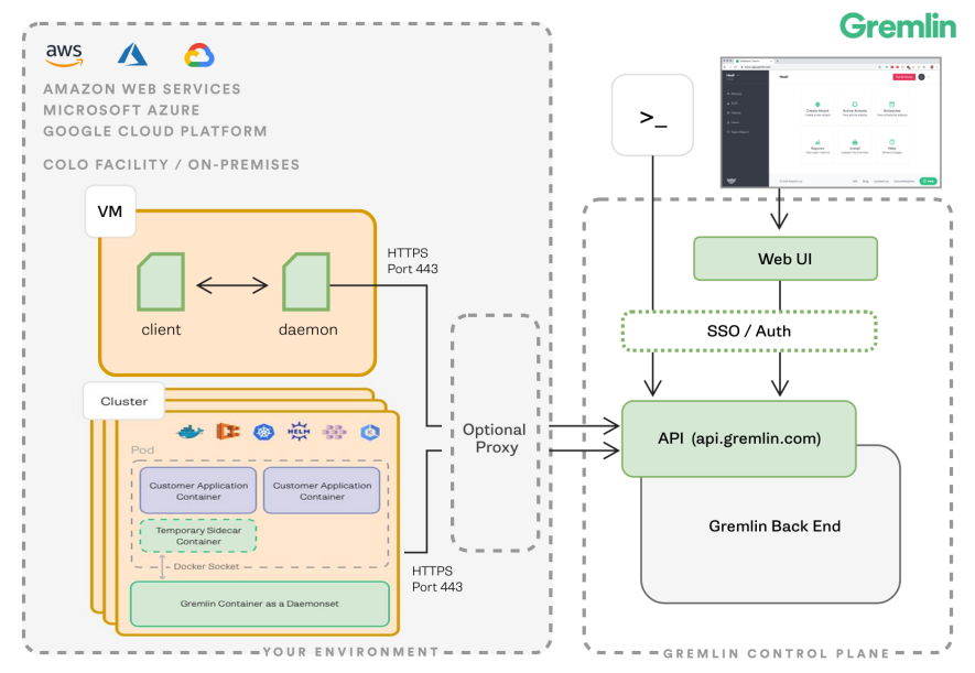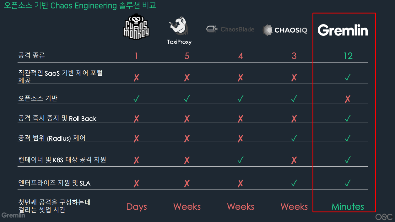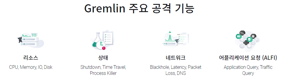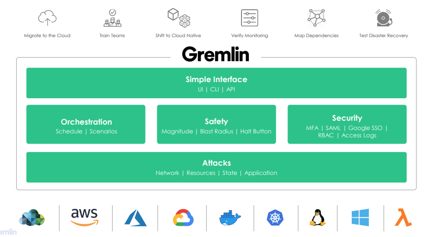 Gremlin은 AWS 외 주요 클라우드 환경과 컨테이너, 쿠버네티스, 온프레미스 환경의 대상에 대해 테스트가 가능하다.
